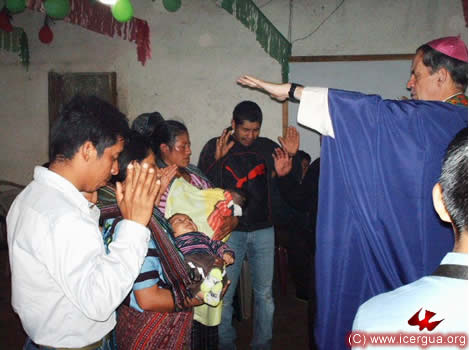El 29 por la noche, Monseñor Eduardo celebró la Eucaristía en la comunidad de Tierra Caliente, Sacapulas, Quiché. En esa ocasión recibieron el sacramento del bautismo algunos niños. |
