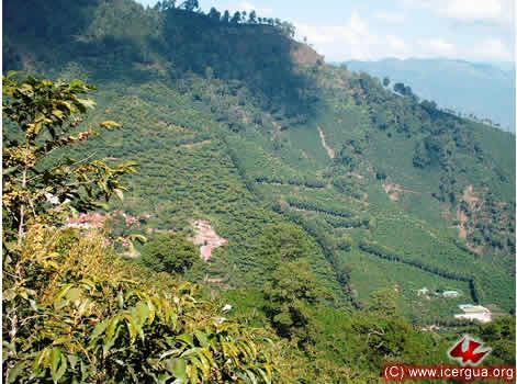 En la foto de arriba: vista de una de las plantaciones de café, ubicadas entre la carretera Panamericana, a la altura de los que se conoce como El Boquerón (a unos 20 kilómetros de la Mesilla, frontera con México) y la Comunidad de "La Esperanza", del municipio Unión Cantinil.