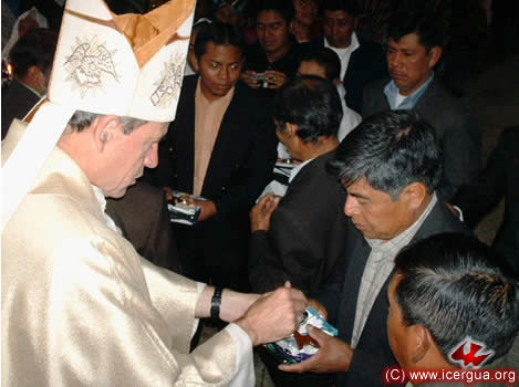 La Comunidad de Pentecostés, en Santiago Atitlán, está experimen- tamdo un momento de crecimiento. El sábado el obispo la visitó y celebró dos bautismos. Ahora ellos se preparan a elaborar un proyecto pastoral para el año 2010, con vistas a mejorar su acción misionera y su organización interna. |
