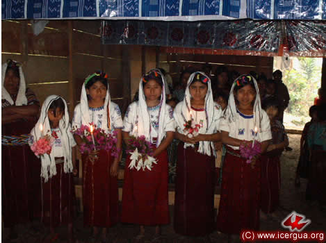 El doce por la noche se celebró el rito completo de iniciación cristiana de una hermana perteneciente a la comunidad de Segundo Carrizal de la Cabecera Departamental de Huehuetenango. La hermana pertenecía a una iglesia evangélica. Pocos días después del 12 contraerá matrimonio con un hermano miembro de ICERGUA. Él junto a sus padres y a los catequistas de la comunidad realizaron la formación, que culminó con la celebración del rito de iniciación. |