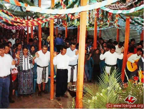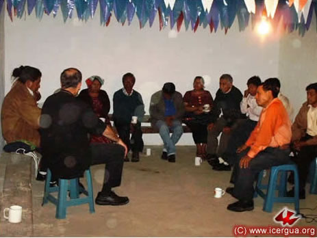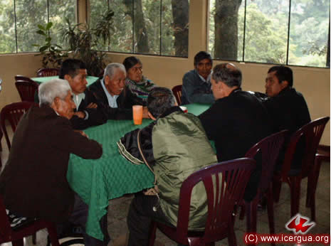 Desde Enero de 2008 y con el apoyo incondicional de nuestro obispo, se instalaron en San Juan Comalapa las autoridades indígenas, organiza-das como "Alcaldía Indígena". La razón de la visita fue celebrar la Eucaristía en Acción de Gracias por todas las bendiciones recibidas, así como compartir el almuerzo y tener una reunión para compartir cuestiones de mutuo interés. El resultado de la reunión fue muy hermoso. Tanto las Autoridades Indígenas como el Obispo asumieron el compromiso de seguir en contacto, para apoyar, cada quien desde su propio campo de competencia, el proceso de dignificación de la Comunidad Indígena de San Juan Comalapa. |