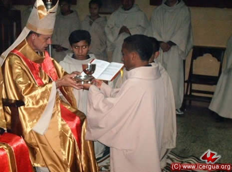 ICERGUA optó por restablecer, como itinerario de preparación para la ordenación diaconal, el orden intermedio del "subdiaconado", para quienes son parte de la "Comunidad Nazaret". A través de este orden, además de asumir los compromisos propios que la tradición asigna al mismo, nuestros candidatos asumen dos compromisos de suma importancia, dentro del camino de consagración al Señor: Hacen la incorporación perpetua a la "Comunidad Nazaret" y el compromiso de mantener el celibato por el Reino de los Cielos. |