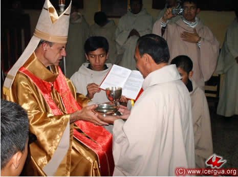 Amadísimos hermanos, ustedes han sido elegidos para recibir el orden sagrado del subdiaconado, incorporándose definitivamente, a la Comunidad Nazaret. Es muy impor-tante que comprendan cuidadosa-mente lo que esto implica, pues, por el orden sagrado que reciben, su vida quedará total y perpetuamente consagrada al servicio de Dios y de su pueblo. Además, ustedes asumen el compromiso, con la ayuda del Señor, de mantener, para siempre, el celibato por el Reino de Dios. Por lo mismo, es importante que antes de acceder a este sagrado orden, manifiesten ante el Pueblo de Dios, su opción por asumir libre y seriamente los compromisos inherentes al mismo. (Del ritual de ordenación para subdiáconos)