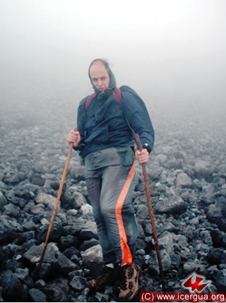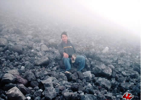 La llegada a la cima del volcán de Fuego, estuvo precedida por momentos de riesgo y tensión. Un viento muy fuerte y una neblina que congelaba, azotaron desde que se llegó al primer pico del volcán, hasta llegar a la meta, ubicada en el tercer pico, a unos pocos metros del cráter.