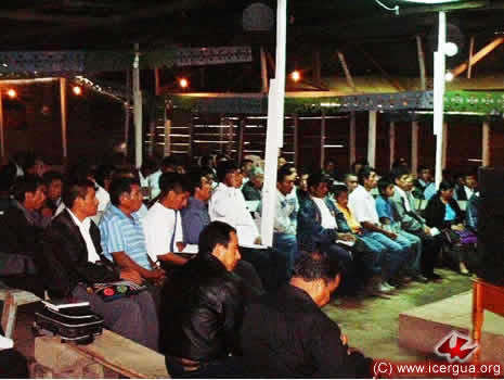 Arriba: Momento en que cada uno de los delegados hace una relación de los logros y dificultades de su comunidad.