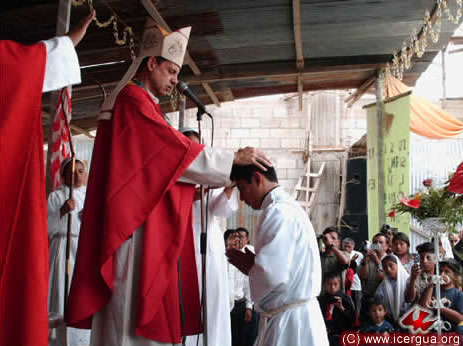 El Domingo 26, en la Iglesia de Belén, Santa Eulalia y con la participación de unos 2500 hermanos, se celebró la ordenación diaconal del sub-diácono Luís Felipe Corimanya. Luís Felipe es originario del Perú, aunque lleva ya seis años de formación en Guatemala. |