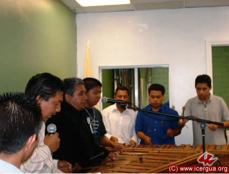 A la derecha se puede ver al ministerio que toca con la Marimba. El director es el Hermano León. Él también es el presidente del Consejo Pastoral de las comunidades.