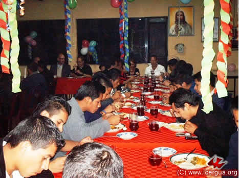 A la derecha: Otra vista de las mesas en que los seminaristas comparten la cena. |