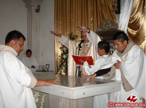 El miércoles 30, en una solemne ceremonia celebrada en la capilla de nuestro Seminario, cuatro de nuestros hermanos seminaristas, que actualmente se encuentran haciendo su Ejercicio Pastoral Supervisado, recibieron el orden de los sub-diáconos. Dentro del ritual de ordenación, después de ser llamados, cada uno de los ordenan-dos enciende una vela del cirio pascual, para indicar su disponibili-dad a consagrarse totalmente a Dios, optando por su incorporación perpetua y definitva a nuestra Comunión Santa María del Nuevo Éxodo y asumiendo el celibato por el Reino de los cielos, como su estado de vida. |
