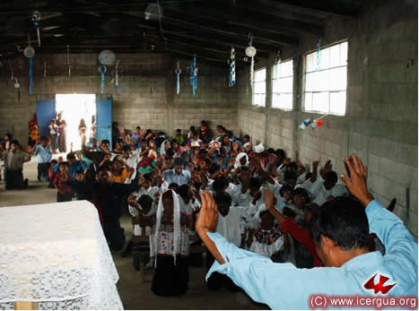 El cinco por la tarde, nuestro obispo realizó la segunda visita a la comunidad de Chamul, Concepción Tutuapa, San Marcos. Esta comunidad es numerosísima y tiene gran entusiasmo. Entró en la comunión hacia fines del año pasado, sin embargo el compromiso de sus miembros le ha hecho crecer y llevar la Buena Nueva a muchas de las Aldeas vecinas. |