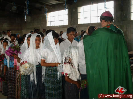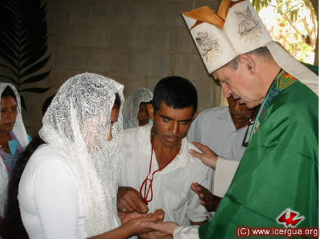 El sábado 19, nuestro obispo comenzó su misión pastoral visitando por primera vez la pequeña comunidad de San Isidro, en el Municipio de La Democracia, Huehuetenango. Entre las diferentes actividades, estuvo la gozosa celebración del matrimonio entre Juan y Carmelina. Ellos tenían muchos años de vivir unidos. Sin embargo, no habían podido regularizar su situación, en primer lugar porque Juan había estado casado canónicamente anterior-mente y, en segundo lugar, porque no tenían los medios para pagar por la celebración de la ceremonia civil. Después de largo estudio, hace algún tiempo se había declarado la nulidad del matrimonio canónico. Con la bondadosa ayuda de una notario ese día se pudo celebrar tanto el matrimonio civil como el religioso. De esa forma, los últimos tienen también la oportunidad de participar de todas las bendiciones. |