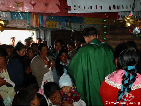 El domingo 20 por la mañana, Monseñor Eduardo hizo una visita a la Comunidad de San Pablo Sibilá, en la cima de los Cuchumatanes, jurisdicción de Chiantla, Huehuete-nango. Era la primera vez que el obispo visitaba esta comunidd, que, sin embargo, tiene ya varios años de existencia. El pequeño y sencillo oratorio estaba colmado de feligreses. Ese día fue instalada la presencia del Santísimo Sacramento en el oratorio, quedando pendiente la institución del Ministro de la comunión que, después de ser cuidadosamente instruido, será instituido en la próxima Asamblea que se realizará a finales de Agosto en el Centro de formación. Por el momento, los ministros de las comunidades vecinas ejercerá el ministerio en esta comunidad. |