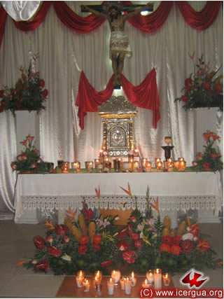 La vista del Santuario es impresionante. El tabernáculo es una verdadera obra de arte, está labrado en plata con incrustaciones de oro y data de la época colonial. |