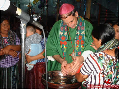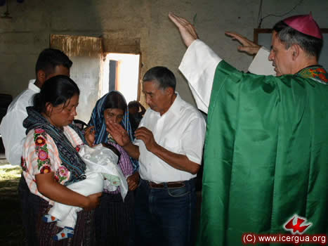 Hacia el medio día el obispo realizó también la primera visita pastoral a la Comunidad de san José Ixcunén, también en el Municipio de La Democracia. Esta comunidad ingresó a la Comunión hace menos de un año. Consta de unas 60 familias, cada una formada por bastantes miembros. Con ocasión de la visita se celebraron bautismos y primeras comuniones. |