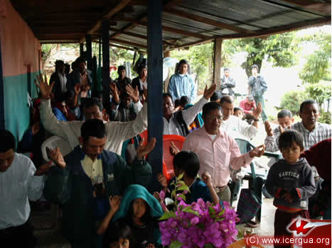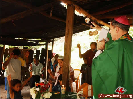 Por la tarde, bajo una fuerte lluvia, el obispo celebró la Eucaristía con la también nueva comunidad de La Mesilla. Esta comunidad comenzó hace pocos meses. A pesar de estar compuesta solamente por 7 familias que totalizan unos 60 miembros, ha logrado ya tener el terreno en el que construirán la iglesia y ha conseguido los instrumentos musicales para tener un ministerio de música. Con su fe y entusiasmo, esperan que pronto la comunidad se multiplicará en el número de sus miembros y que logran realizar sus proyectos. |