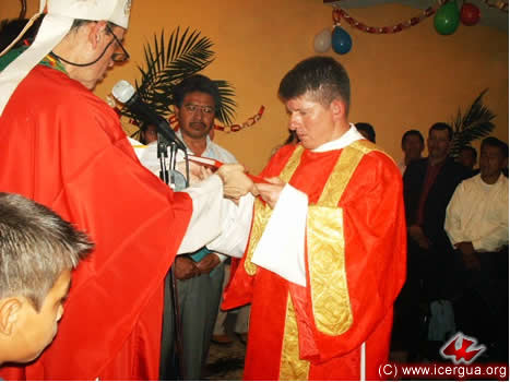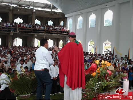 El sábado 31 el obispo presidió la eucaristía en el hermosísimo templo que se está terminando de construir en Santa Cruz Barillas. El área para las celebraciones cuenta con 820 metros cuadrados y, dado que los hermanos en las ocasiones especia-les permanecen de pie, puede dar cabida a más de tres mil participan-tes. Ese día tuvieron lugar dos acontecimientos de suma trascen-dencia: la creación de la parroquia y la ordenación diaconal del sub-diácono José Armando Hernández. |