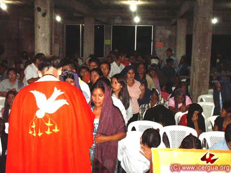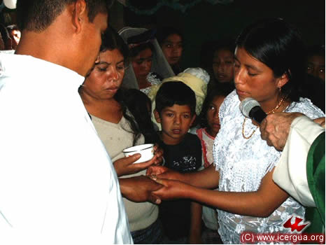 Por la tarde del día 18, el obispo celebró la Eucaristía con la comunidad de Salquilito, en uno de los barrios del centro de Nebaj. Esta comunidad está experimentan-do un acelerado crecimiento. Hay 13 nuevas familias que se han integrado en los últimos tres meses y muchos de los hermanos están recibiendo abundancia de carismas especiales. Dos de ellos han sido reconocidos por la comunidad como "misioneros y evangelizadores". Por lo mismo, se les bendijo para ejerzan esos carismas como ministerios reconocidos por la comunidad. |