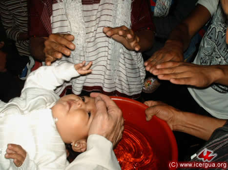 Como parte de la ceremonia, se realizarn varios bautismos, como puede observarse en la foto de la derecha. |