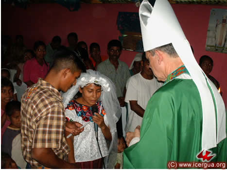 Hacia el medio día del 3, Monseñor Eduardo visitó la comunidad de Santo Domingo, en La Libertad, Huehuetenango. Bajo la coordina-ción del Hermano Juan, que además trabaja a nivel de toda la región, la comunidad ha estado consolidándo-se. Con ocasión de la visita del obispo, se celebró el matirmonio de una pareja y se dio la iniciación cristiana a varios jóvenes. |