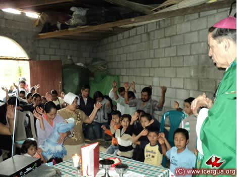El domingo 17 por la mañana, Monseñor Eduardo visitó la comunidad de ICAL, en Colotenan-go. Se trataba de la segunda visita que hacía, pues la comunidad ha hecho alianza hace apenas un par de meses. Los hermanos se sienten muy animados y están capacitándo-se para poder entregarse a la evangelización. |