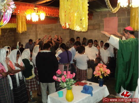 El sábado 2, desafiando los proble-mas ocasionados por las lluvias, que habían provocado el cierre completo de la carretera que de Huehuetenango conduce a Aguacatán, nuestro obispo realizó por primera vez la visita a la Comunidad de Xenacicul. Se trata de una comunidad de idioma Quiché, que estaba ingresando y haciendo alianza. Está formada por unos quinientos hermanos. Ese día se llevó a cabo también la bendición del templo que acababan de terminar. La ceremonia estuvo cuidadosamente preparada y fue retransmitida a toda el área, a través de una estación de radio comunitaria del Municipio de Sacapulas, el Quiché.