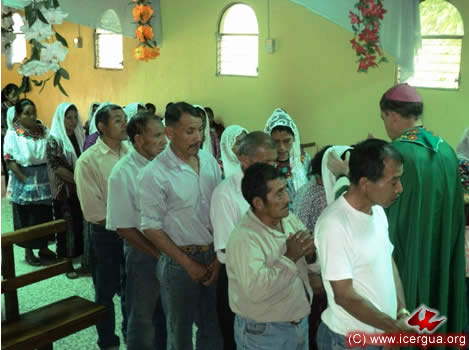 El sábado 23 por la mañana, el obispo visitó la comunidad católica renovada de Tictúcabe, Concepción Tutuapa, San Marcos. Se pudo apreciar que, después de años de trabajo, a veces marcado por difi-cultades, la comunidad está logran-do experimentar su consolidación y crecimiento. Con ocasión de la visita, se administraron los sacra-mentos de iniciación cristiana a varios hermanos. Otros fueron solamente crismados y dos parejas de ancianos celebraron su matrimo-nio. |