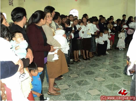 En la foto de la derecha: podemos ver a la pareja que contrajo matrimonio presentando a sus niños, para que ellos pudieran recibir los sacramentos de la iniciación cristiana. |