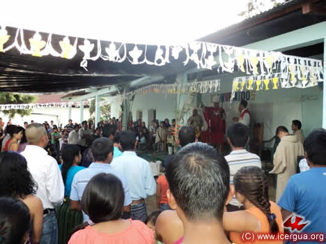 Arriba: Vista del ministerio de la comunidad, que anima con la marimba las diversas celebracio-nes.