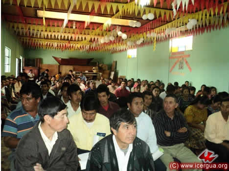 De las once de la mañana a la una y media de la tarde, se celebró una Asamblea con los líderes, catequis-tas, representantes de las comunidades y presbíteros, con la participación del obispo. La razón de la misma era participar en la formación que, por invitación de la junta parroquial, impartiría el obispo. Durante el tiempo que duró la reunión, el obispo habló del significado que tienen las cuatro características de nuestra misión. Explicó que ésta es bíblica, Cristiana, Católica y Eclesial. El Padre Rigoberto Upún hizo la traducción resumida de las enseñanzas que daba el obispo, para garantizar la comprensión de todos. Hubo amplio tiempo para responder a las preguntas que tenían los participantes. Al final se estableció que tales reuniones se tendrán cada tres meses, para garantizar el crecimiento y la sinto-nía eclesial. |