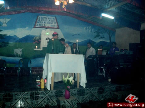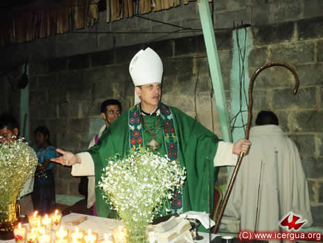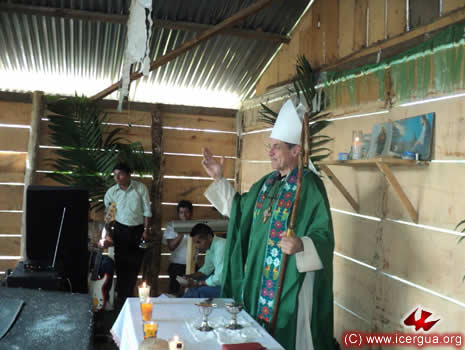 Por la noche del día 23, el obispo celebró la eucaristía con la comuni-dad de Santa Ana, Petén. Había pre-sentes también representantes de otras comunidades, los cuales asumieron el compromiso de trabajar con dedicación en la evangelización. |