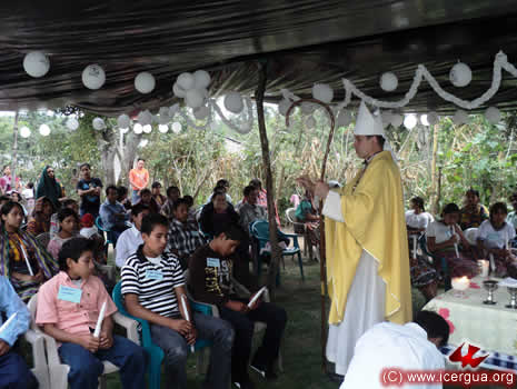 Al caer de la tarde, Monseñor Eduardo celebró la Eucaristía en la que 14 jóvenes fueron confirmados, en la comunidad de Los Caneles. Esta es la más joven de las tres comunidades visitadas. Sin embar-go los hermanos están haciendo lo posible por organizarse, para responder a las crecientes necesi-dades de la comunidad. |