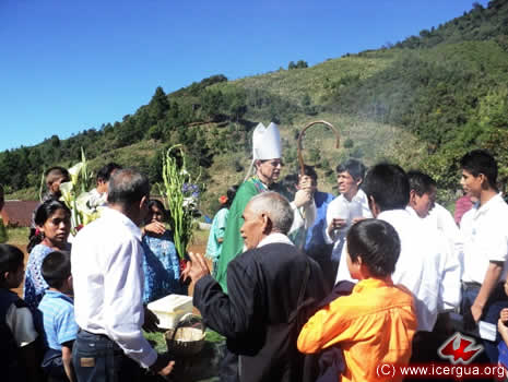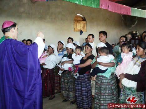 Por la tarde, el obispo visitó la comunidad de Yultziblac. Durante la celebración eucarística, se admi-nistró el sacramento del bautismo a algunos niños. |