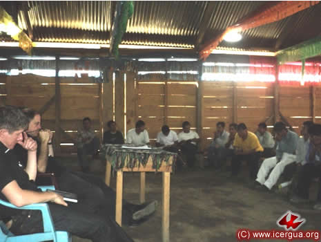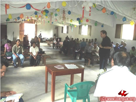 El martes 2 de noviembre, el obispo comenzó la jornada en la Comuni-dad K'anquintik, del Municipio de Nentón, Huehuetenango. Durante la mañana se celebró la reunión de Decanato, con representantes de las seis comunidades católicas renovadas del municipio. Ante algunas dudas e interpretaciones equivocadas, el obispo insistió en que la administración de los sacra-mentos está limitada exclusivamen-te para quienes hacen parte de la iglesia. Especialmente en lo que se refiere a la administración del bautismo de niños; ésta puede hacerse solamente para los hijos de quienes son miembros activos de la iglesia. |