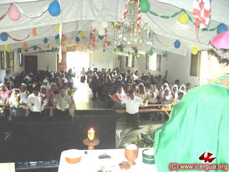 La razón principal de la visita, como puede observarse en la foto de la derecha, era la bendición del templo que, con gran esfuerzo, han apenas terminado de construir. La comunidad está formada por varios centenares de personas y todos, con gran entusiasmo están ahora decididos a comprometerse en la evangelización. |