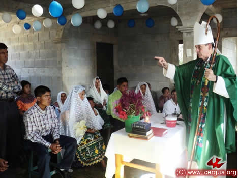 El 17 por la tarde, Monseñor Eduardo presidió la celebración de la Eucaristía en la sede central de San Mateo Ixtatán. Un grupo de herma-nos, diligentemente preparados, bajo la dirección del Padre Marcos Caicedo, recibirían la confirmación. La ceremonia fue cuidadosamente preparada y se pudo constatar el crecimiento de la comunidad. |