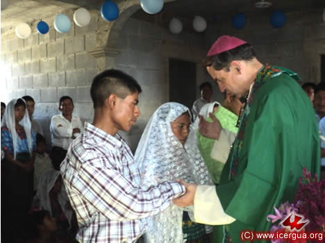 Por la tarde Monseñor visitó la comunidad de Tierra Caliente en Sacapulas, el Quiché. Dos parejas contrajeron matrimonio y durante la celebración, también se administró la iniciación cristiana a cuatro niños, dos de los cuales eran hijos de las parejas que también estaban contrayendo matrimonio. |