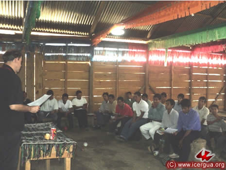 Después del almuerzo, el obispo realizó una visita a la comunidad central de Salquil Grande. Esta comunidad está actualmente en proceso de reestructuración, después de la cresis que pasó re-cientemente y que llevó al naci-miento de una nueva comunidad. El lider de la comunidad es el Hermano Juan Raymundo, quien fue también uno de los fundadores de la Renovación Carismática en el área de Nebaj. |