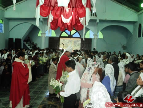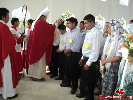 Por la tarde se llevó a cabo la celebración de la Eucaristía, durante la cual un número de jóvenes y señoritas, esmerádamente prepara-dos por los catequistas, bajo la guía del Padre Hugo Patzán, recibió el sacramento de la Confirmación de la Crismación. Los jóvenes, concienti-zados de los compromisos que implica la recepción del sacramento, expresaron su disponibilidad a asumirlos con generosidad y seriedad. |