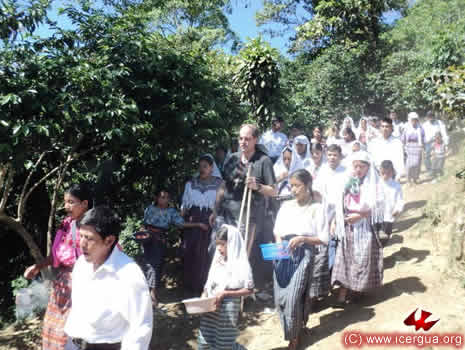 El miércoles 17 por la mañana, el obispo realizó la primera visita a otra comunidad que acaba de hacer alianza: La nueva Providencia, en el municipio de Barillas. La ocasión, además de dar la bienvenida al obispo, era la de celebrar la confir-mación de 25 hermanos. Como se acostumbra hacer cuando se visita por primera vez una comunidad, los hermanos salieron arecibir al obispo y a los padres Hugo y José Armando a la entrada de la comunidad. Desde allí se realizó una hermosa procesión, hasta llegar a la casa de oración. |