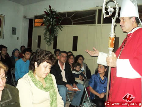 Por la noche el obispo visitó la comunidad de Los Olivos, en la zona 18. Esta comunidad, servida por el Padre Herberth Urrutia, en medio a grandes dificultades y diversas formas de persecución, ha mostra-do la solidez de su fe y su compro-miso a perseverar en la vida de la iglesia. Actualmente cuentan con instalaciones para poder cumplir la misión que el Señor les ha encomendado. La ocasión de la visita fue la administración de la confirmación a una veintena de hermanos. |