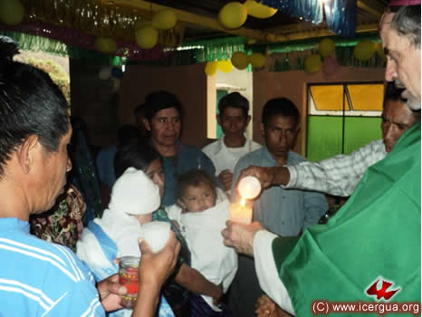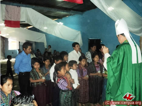 El sábado 5 por la mañana, el obispo visitó la comunidad de Huicá, en el Municipio de la Libertad, Huehuetenango. En esa ocasión un niño fue iniciado en la vida cristiana y dos niños recibieron su comunión solemne. |