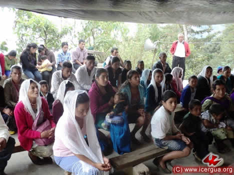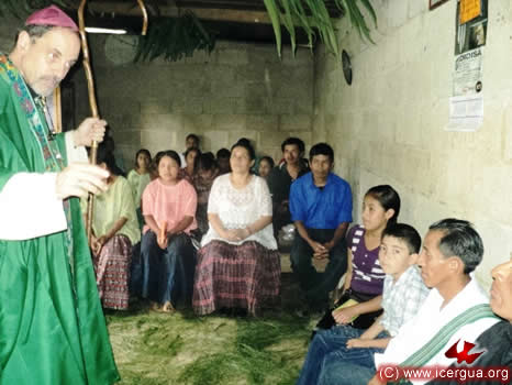 Por la tarde el obispo realizó la primera visita pastoral a la comunidad de San José Sahijá, ubicada en el Municipio de Cobán, pero ya colindando con Playa Grande, Ixcán, Quiché. El viaje fue largo y desde el lugar a donde llegó el vehículo, hubo aún que caminar unos 40 minutos para llegar hasta la comunidad. El esfuerzo, sin embargo, valió la pena. Los hermanos se habían preparado con gran alegría. El número de participantes era muy grande y la celebración se desarrolló en la mejor de las formas. |