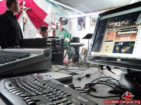 Arriba: Vista del centro de conexión, desde donde se transmitió la Eucaristía.