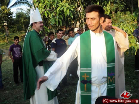 Al caer de la tarde del día 25, la celebración fue en la cabecera municipal de Chisec, Alta Verapaz. La ocasión era la creación de la parroquia de "Cristo Rey". La parroquia está formada actualmente por 13 comunidades, aunque hay varias que están en proceso de incorporarse. De hecho, del día en que se firmó el decreto de creación para el día de su promulgación, ya había ingresado una nueva comunidad. El gozo de la comunidad era patente, pues el ser creados como Parroquia les da una identidad eclesial clara y les permite seguir adelante en su trabajo de evangelización. |