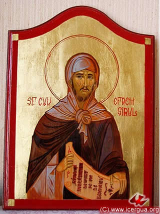 Arriba: icono del Apóstol Pedro: obispo de Antioquía desde el año 37 al 67. A la izquierda: diácono San Efrén, uno de los padres más venerados por la Ortodoxia Oriental.