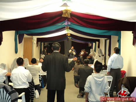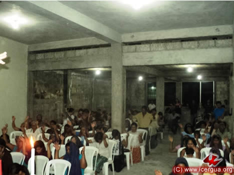A la derecha: panorama de la casa de oración, bastante llena, a pesar de las grandes simensiones que la misma tiene.