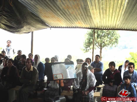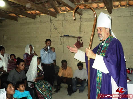El 16 por la tarde, el obispo llegó hasta la lejana comunidad de Satziván. Ubicada en la cima de altas montañas que hacen parte de Los Cuchumatanes, se accede a la misma por un camino muy difícil. La comunidad ha logrado adquirir una propiedad en la cual muy pronto comenzarán a construir el templo. Por el momento se reúnen en el sótano de la casa de uno de los miembros. En los últimos meses, son numerosas las familias que se han agregado a la comunidad. |