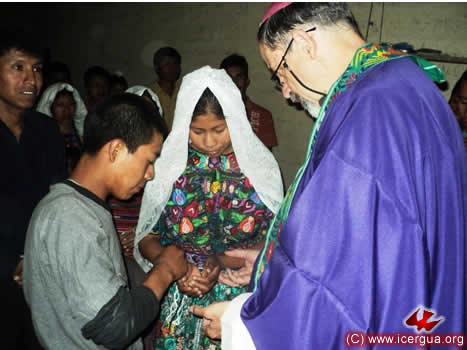 El sábado 2 por la tarde, el obispo realizó su primera visita a la Comunidad de Siete Cerros, ubicada en el municipio de San Pedro Necta. Esta comunidad ha hecho alianza hace apenas un par de meses y, en el poco tiempo ha logrado levantar las paredes y el techo de su nueva Casa de Oración e, ingualmente, se ha esforzado en ir creciendo espiritualmente. Con ocasión de la visita del obispo, 9 hermanos fueron iniciados en la vida cristiana y 6 parejas contrajeron matrimonio sacramental. |