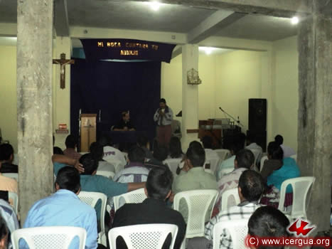 Arriba y a la izquierda: el obispo mientras explica a los hermanos presentes cuáles han de ser las características del trabajo misionero que se realiza. Uno de los temas que ocupó buena parte de la atención fue la cuestión de quienes dicen tener el don de profecía. Se presentaron criterios de discernimiento para reconocer la autenticidad de este don, los cuales se encuentran íntegramente fundamentados en la Sagrada Escritura y permiten que la experiencia de vida de las comunidades no se ve afectada por supuestas revelaciones particulares, que no tienen un fundamento sólido en el testimonio de la Sagrada Escritura. |