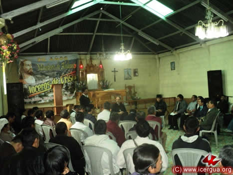 Por la tarde del día 18, el obispo presidió la eucristía en la Comunidad de Cecilia, Cunén. Los hermanos han logrado construir un templo espacioso, capaz de acoger a unos 500 hermanos. El mismo está aún en fase de construcción, sin embargo, han logrado construir lo indispensable para que pueda ser utilizado ya como lugar de reunión y de oración de la comunidad. |